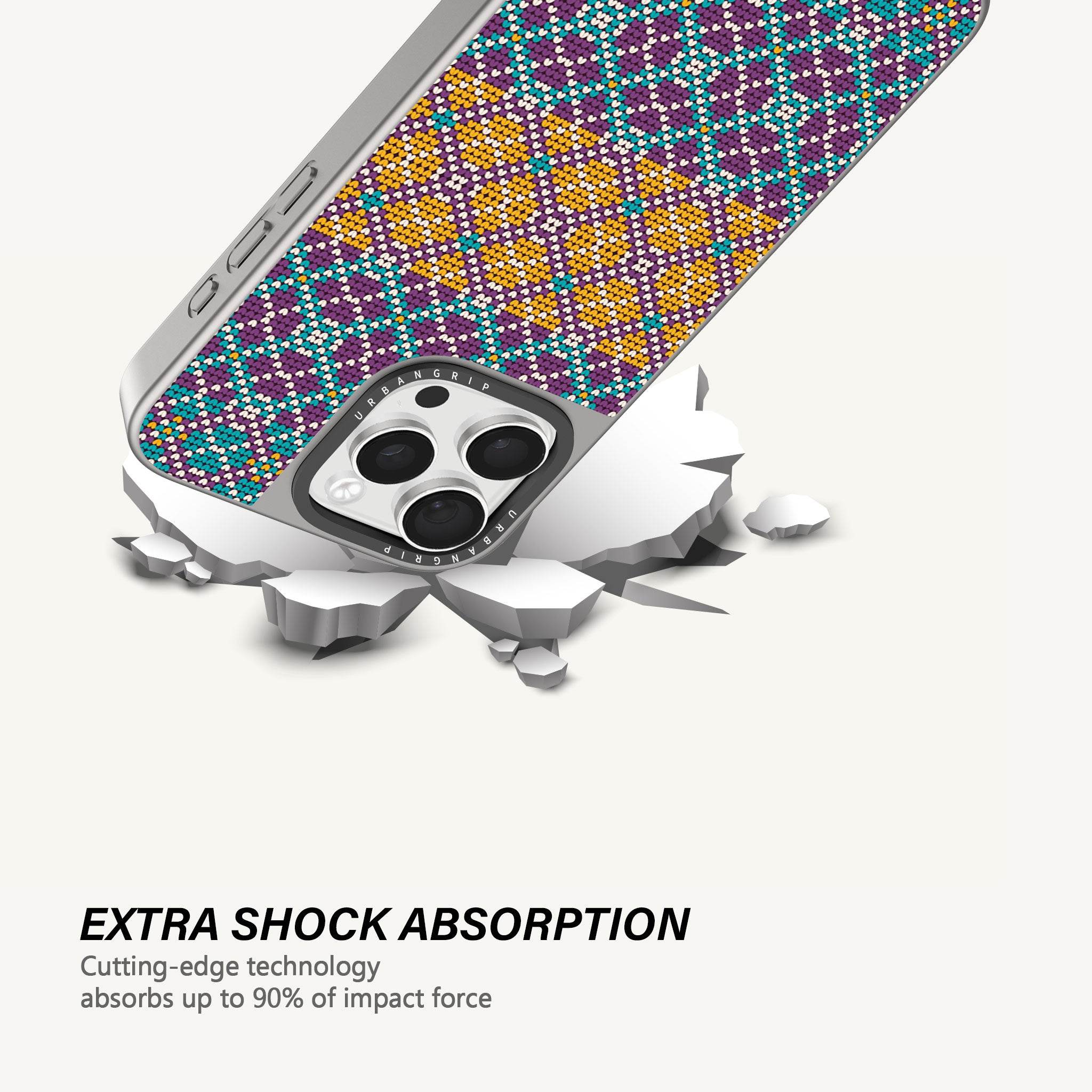 Celebrate tradition with a modern twist in the UrbanGrip™ BeadLoom Case – Tribal Mosaic Edition. Inspired by intricate beadwork and textile artistry, this design features symmetrical diamond and star motifs in vivid hues of purple, turquoise, yellow, pink, and white. Each bead-like dot is meticulously arranged to create a vibrant tapestry that feels both handcrafted and high-tech.