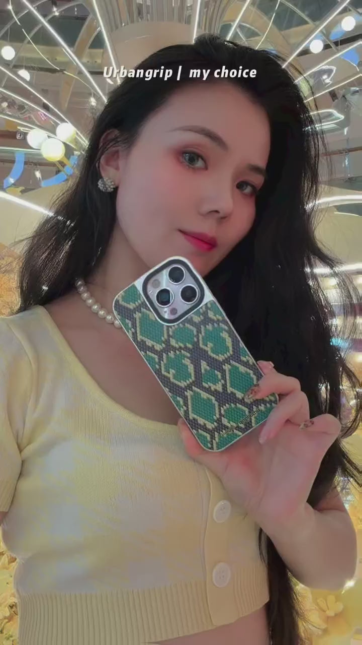 Unleash your wild side with the UrbanGrip™ ViperGrid Case – Jungle Prism Edition, a striking fusion of nature and design. Featuring a vivid snakeskin pattern in shades of green, yellow, and black, this case mimics the hypnotic texture of reptilian scales with a modern, diamond-like layout. It’s bold, edgy, and built to stand out.